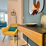"Le Reve Eveille", Vue Mer, Garage appartementen hebben een balkon en een kleedruimte uitgerust met strijkfaciliteiten en airconditioning, evenals een TV en een flatscreen TV met satellietzenders. Deze accommodatie is ook ingericht met een bank en een bureau. Dit appartement heeft 2 slaapkamers met veren kussens. 1 badkamer heeft een inloopdouche en een apart toilet, en moderne gemakken zoals een haardroger en badlakens.